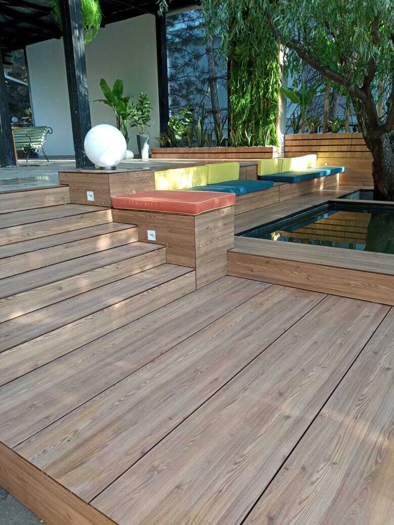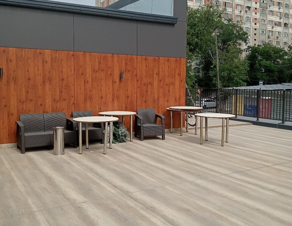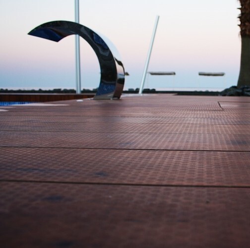 Поверхность «Hexa» идеально подходит для полов на балконах, верандах, террасах, помостах, лестничных клеток и маршей. Панели Hexa используют как настил возле бассейнов, фонтанов, и как напольное покрытие обеденных зон на открытом воздухе.